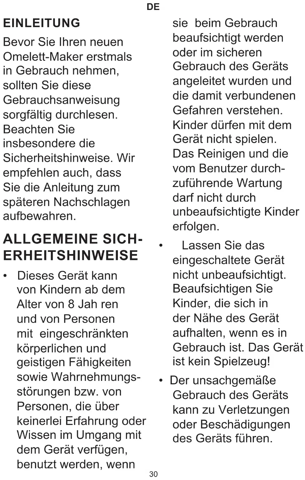 EINLEITUNG BevorSieIhrenneuen Omelett-Maker erstmals in Gebrauch nehmen, solltenSiediese Gebrauchsanweisung sorgfältigdurchlesen. Beachten Sie insbesonderedie Sicherheitshinweise.Wir empfehlenauch,dass SiedieAnleitungzum späteren Nachschlagen aufbewahren. ALLGEMEINE SICH- ERHEITSHINWEISE