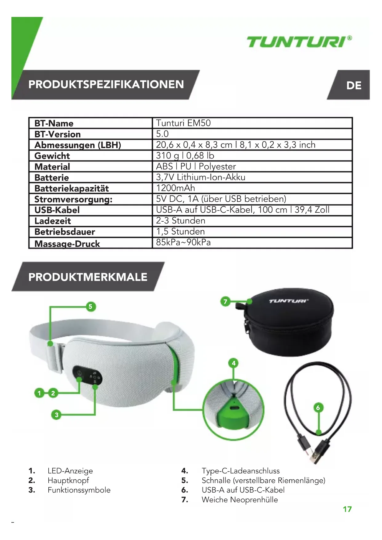 BEDIENUNGSANLEITUNG Eye Massager EM50 TUNTURI
