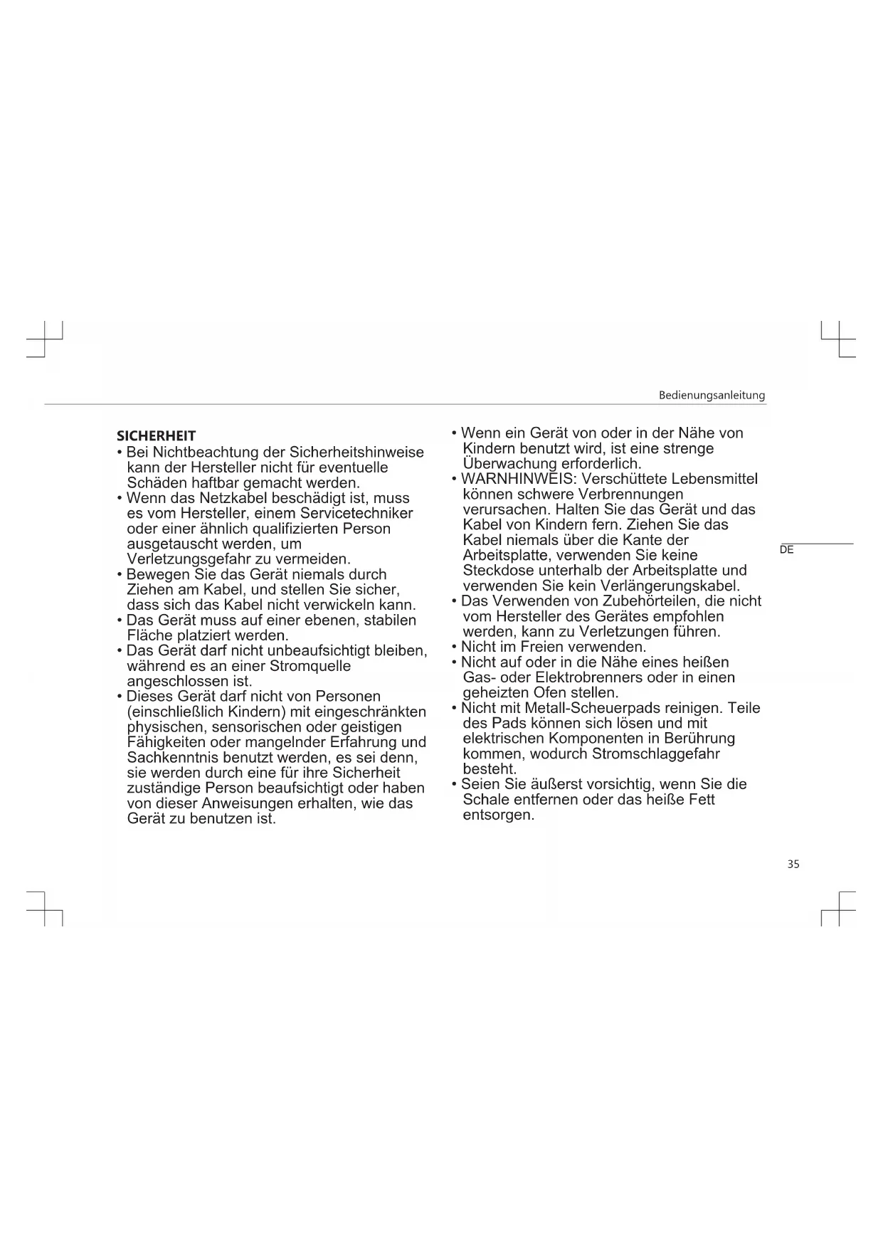 - Seien Sie äußerst vorsichtig, wenn Sie die Schale entfernen oder das heiße Fett entsorgen. DEBedienungsanleitung