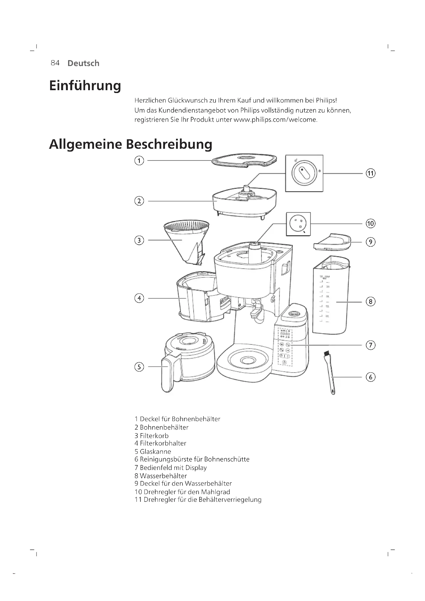 Deutsch Einführung Herzlichen Glückwunsch zu Ihrem Kauf und willkommen bei Philips! Um das Kundendienstangebot von Philips vollständig nutzen zu können, registrieren Sie Ihr Produkt unter www.philips.com/welcome. Allgemeine Beschreibung