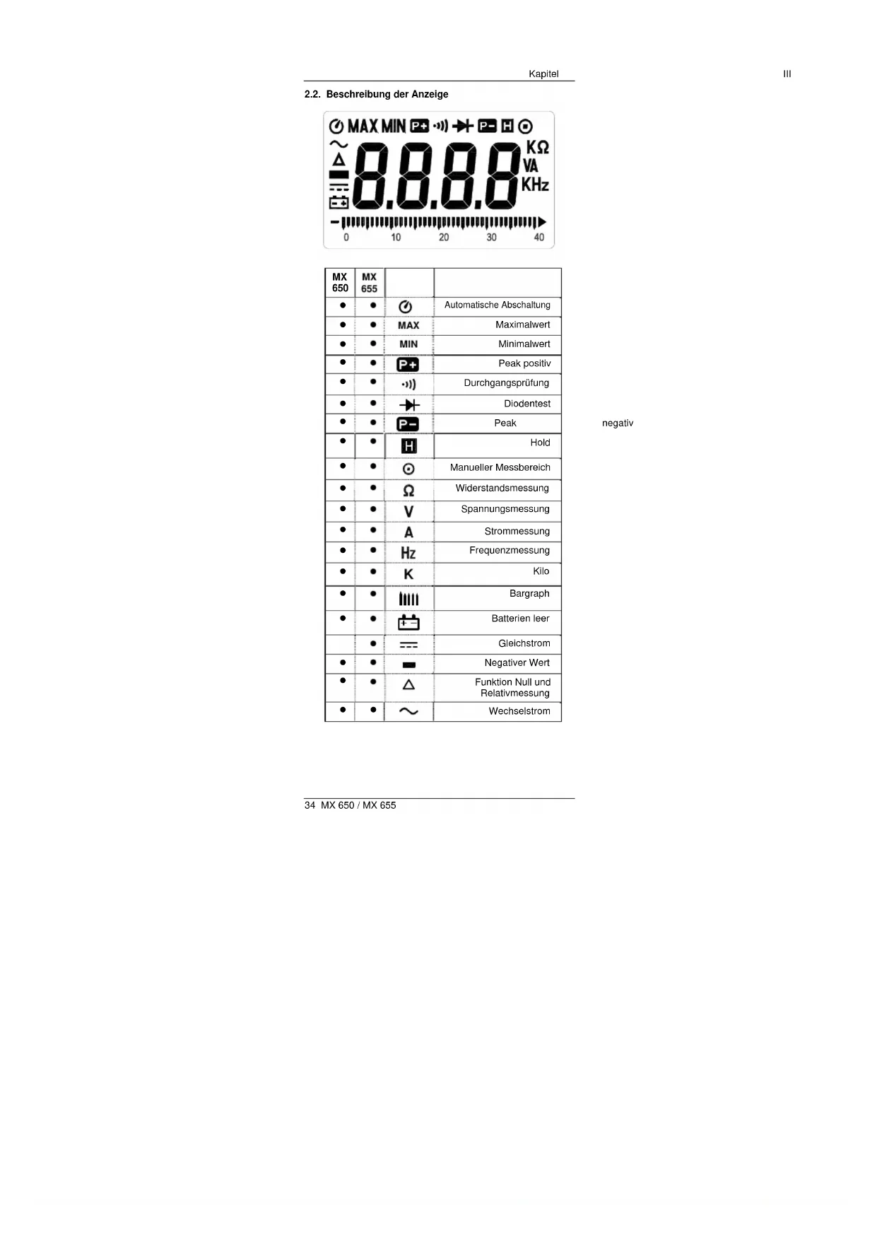 12Kapitel III 34 MX 650 / MX 655 2.2. Beschreibung der Anzeige