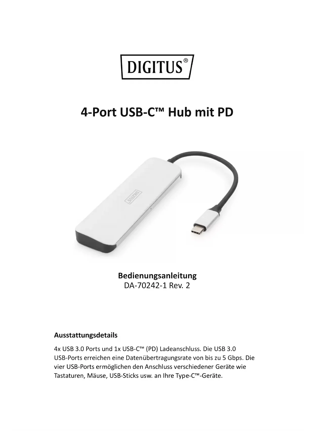 Laden Sie die Anleitung für Ihr USB-Hub kostenlos im PDF-Format! Finden Sie Ihr Handbuch DA-70242-1 - Digitus und nehmen Sie Ihr elektronisches Gerät wieder in die Hand. Auf dieser Seite sind alle Dokumente veröffentlicht, die für die Verwendung Ihres Geräts notwendig sind. DA-70242-1 von der Marke Digitus.