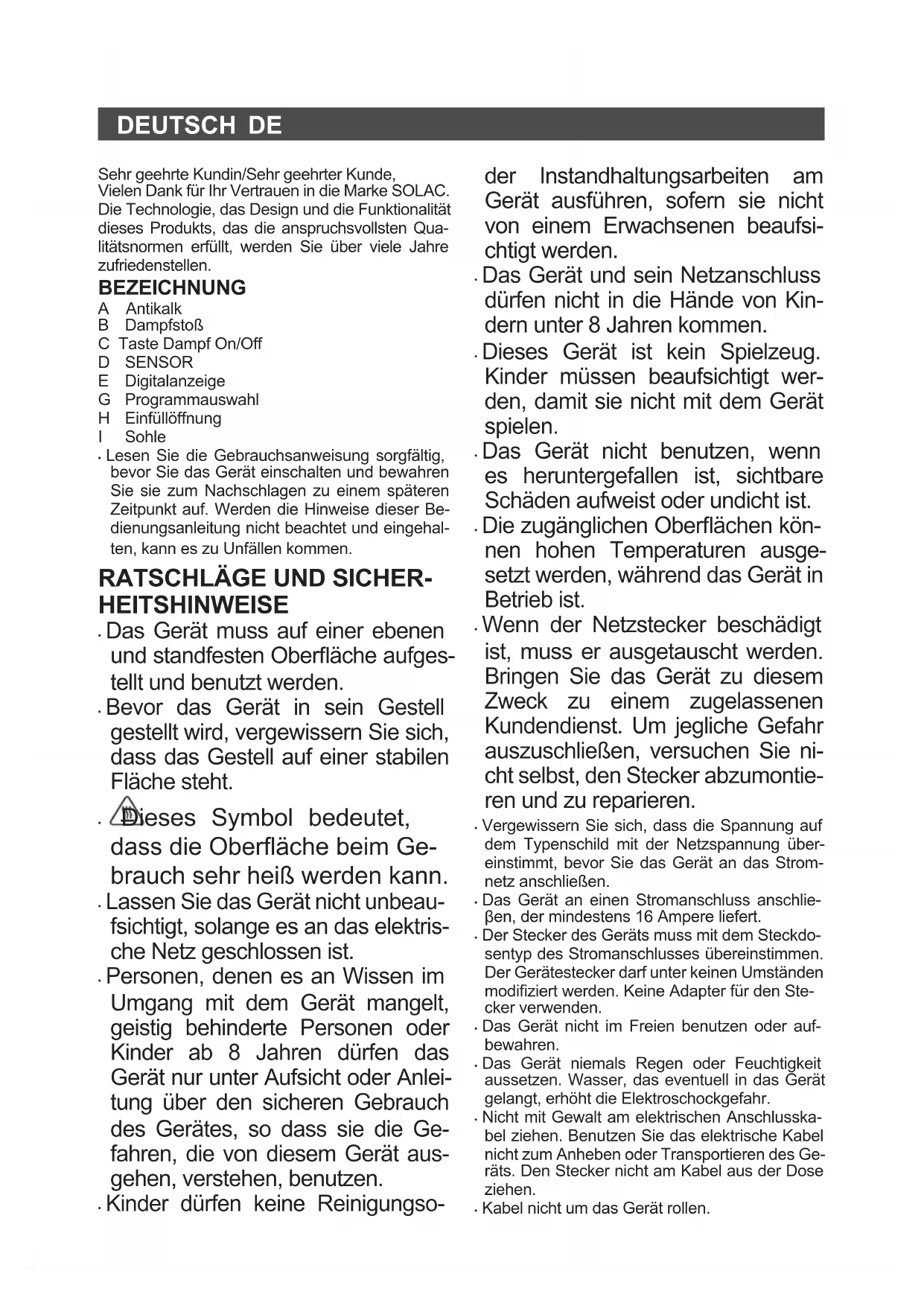 - Dieser Apparat dient ausschließlich für Haus- haltszwecke und ist für professionellen oder ge- werblichen Gebrauch nicht geeignet.