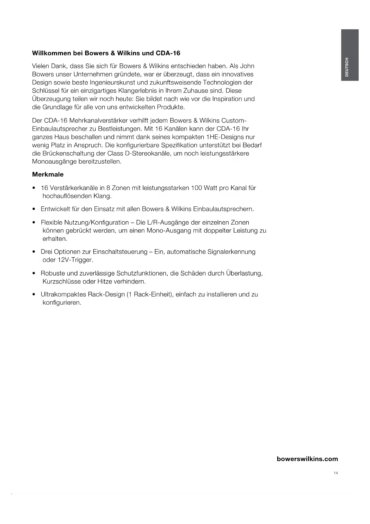 Finden Sie kostenlos die Bedienungsanleitung des Geräts CDA-16 BOWERS & WILKINS als PDF.