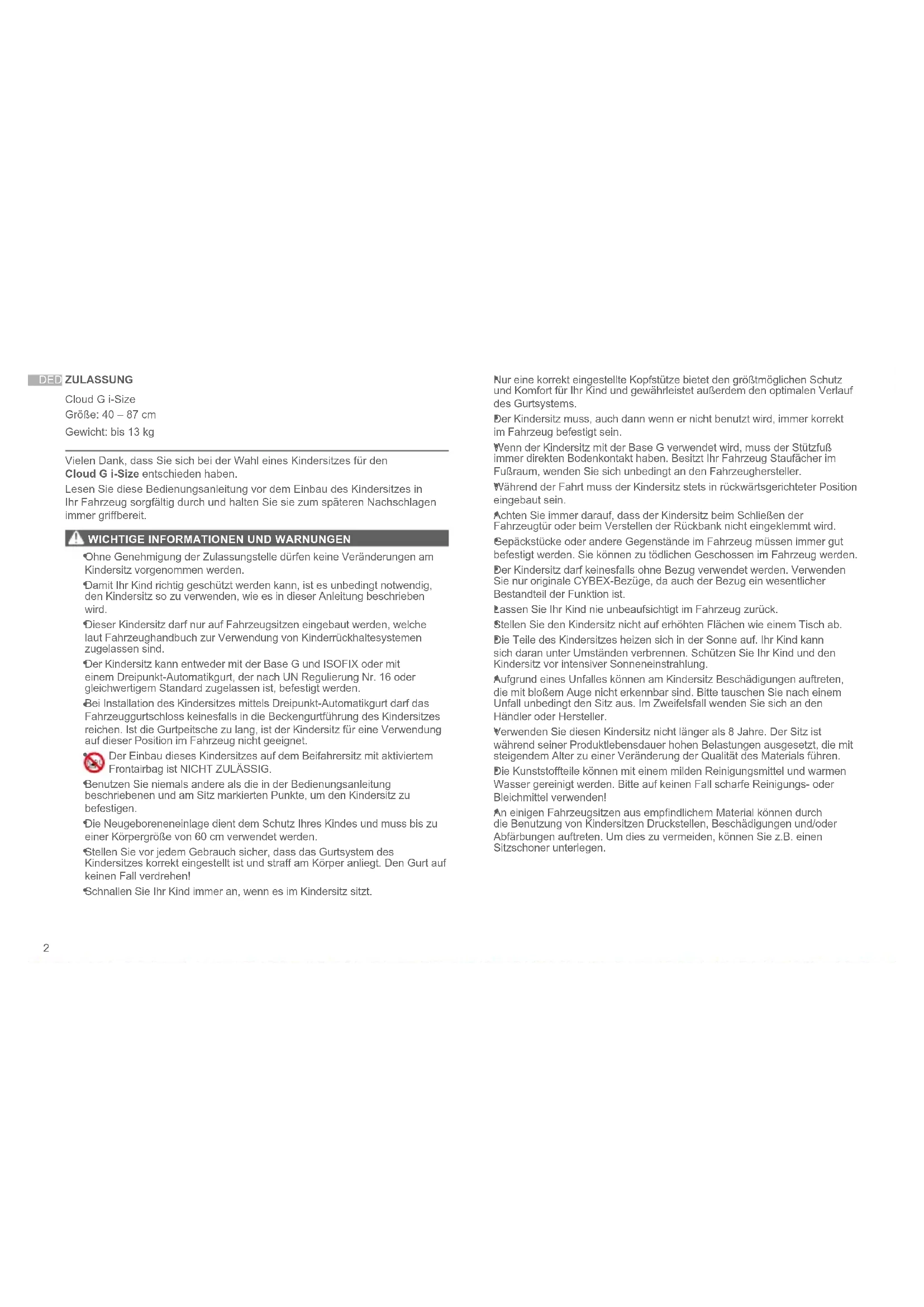 BEDIENUNGSANLEITUNG Cloud G i-Size CYBEX