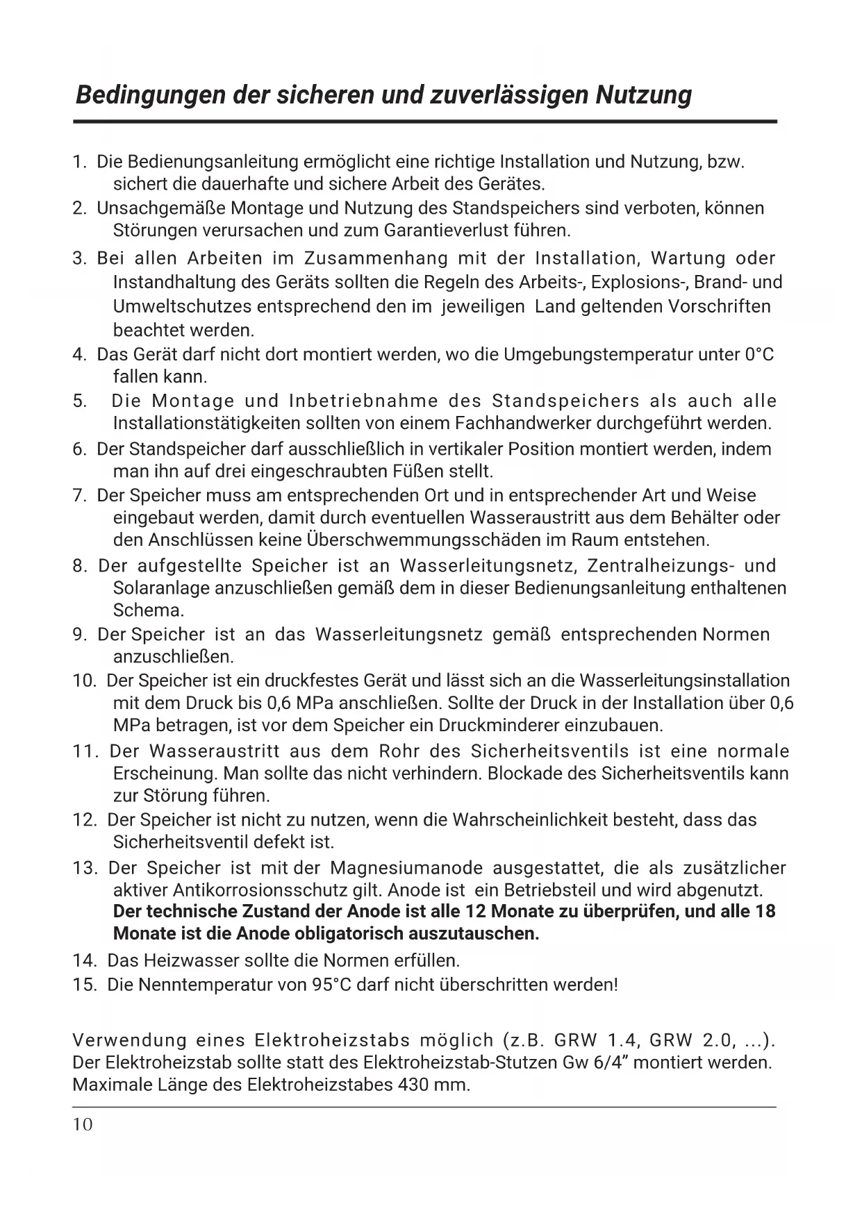 2. Unsachgemäße Montage und Nutzung des Standspeichers sind verboten, können