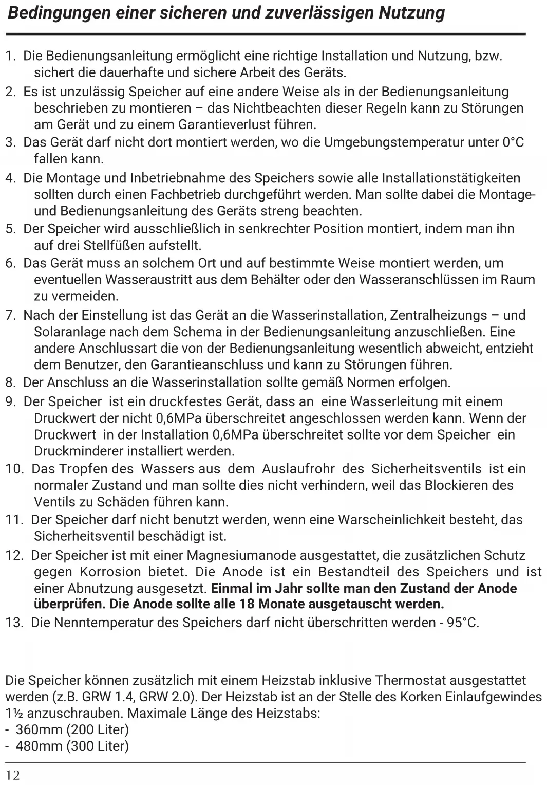 12. Der Speicher ist mit einer Magnesiumanode ausgestattet, die zusätzlichen Schutz
