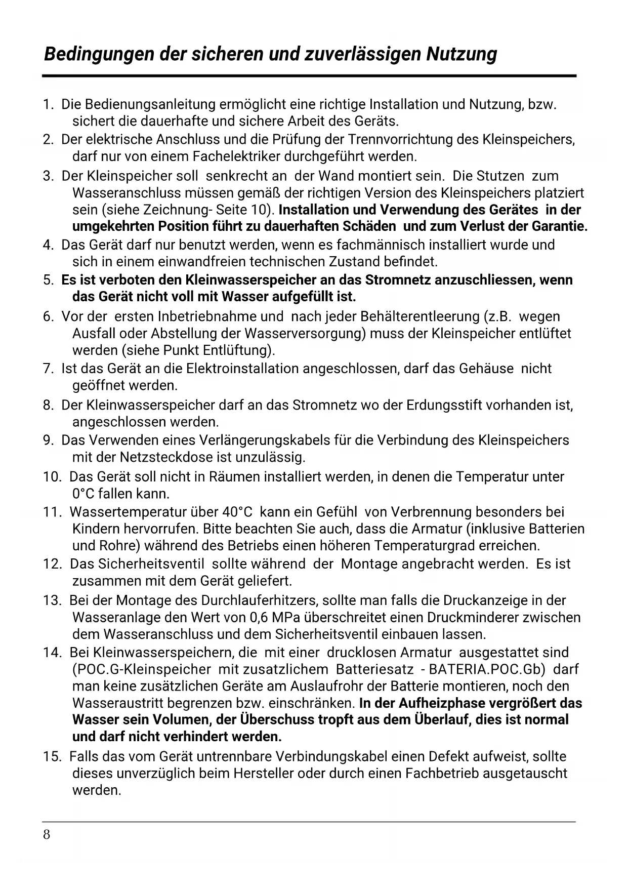 4,4 POC.10 6,1 Stopień ochrony IP24 Króćce ogrzewacza G 1/2" PL8 Bedingungen der sicheren und zuverlässigen Nutzung