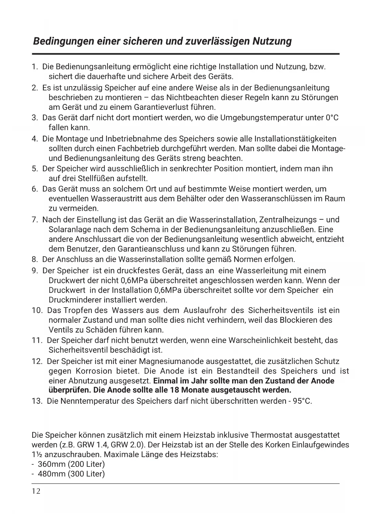 12. Der Speicher ist mit einer Magnesiumanode ausgestattet, die zusätzlichen Schutz