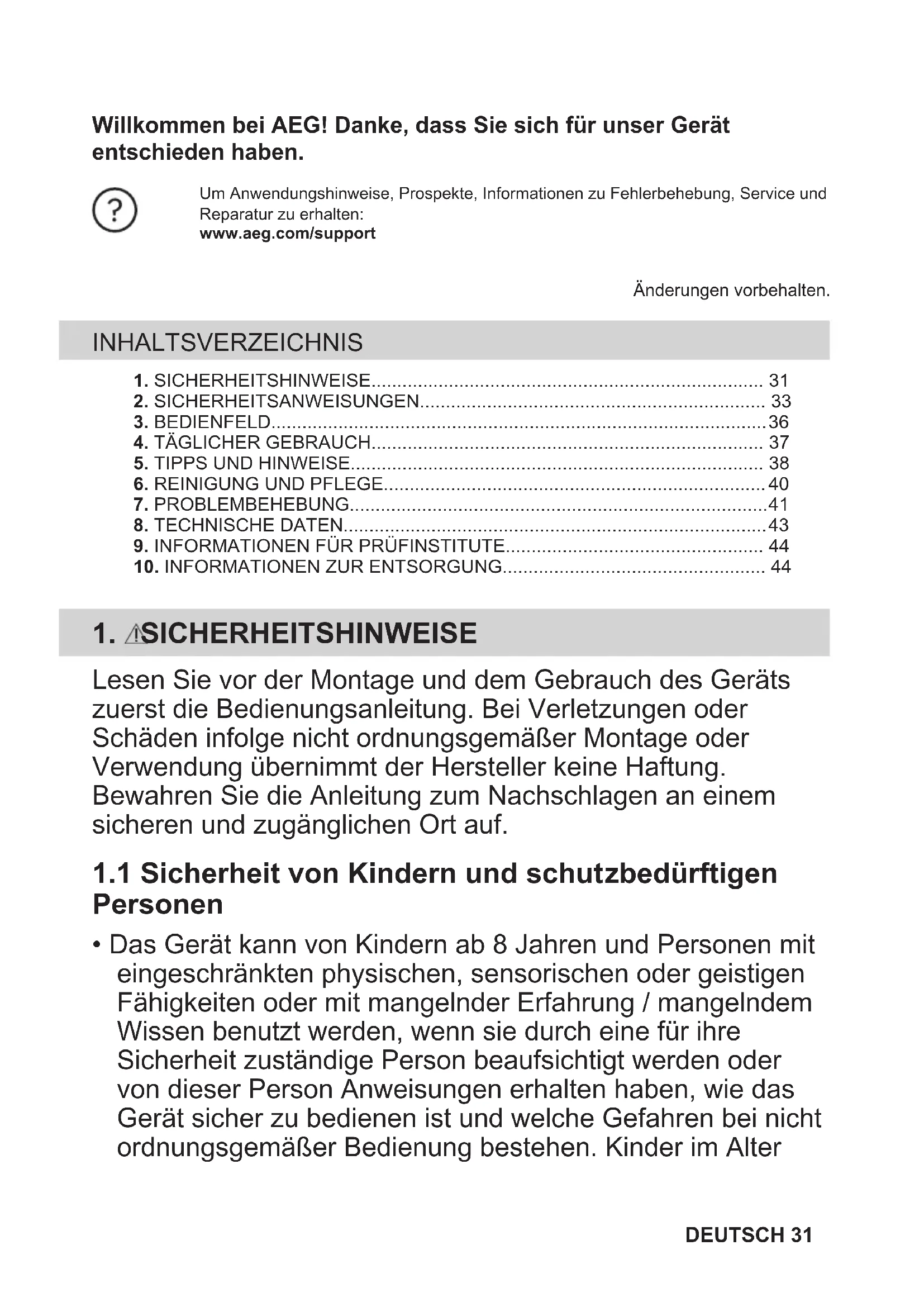 1. SICHERHEITSHINWEISE