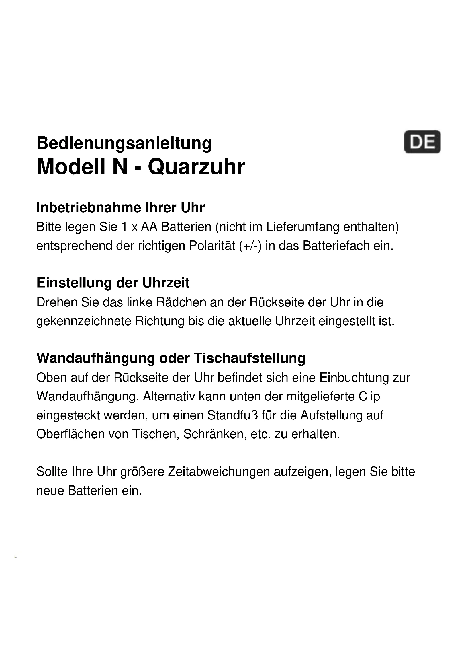 Modell N - Radiowecker TECHNOLINE - Kostenlose Bedienungsanleitung