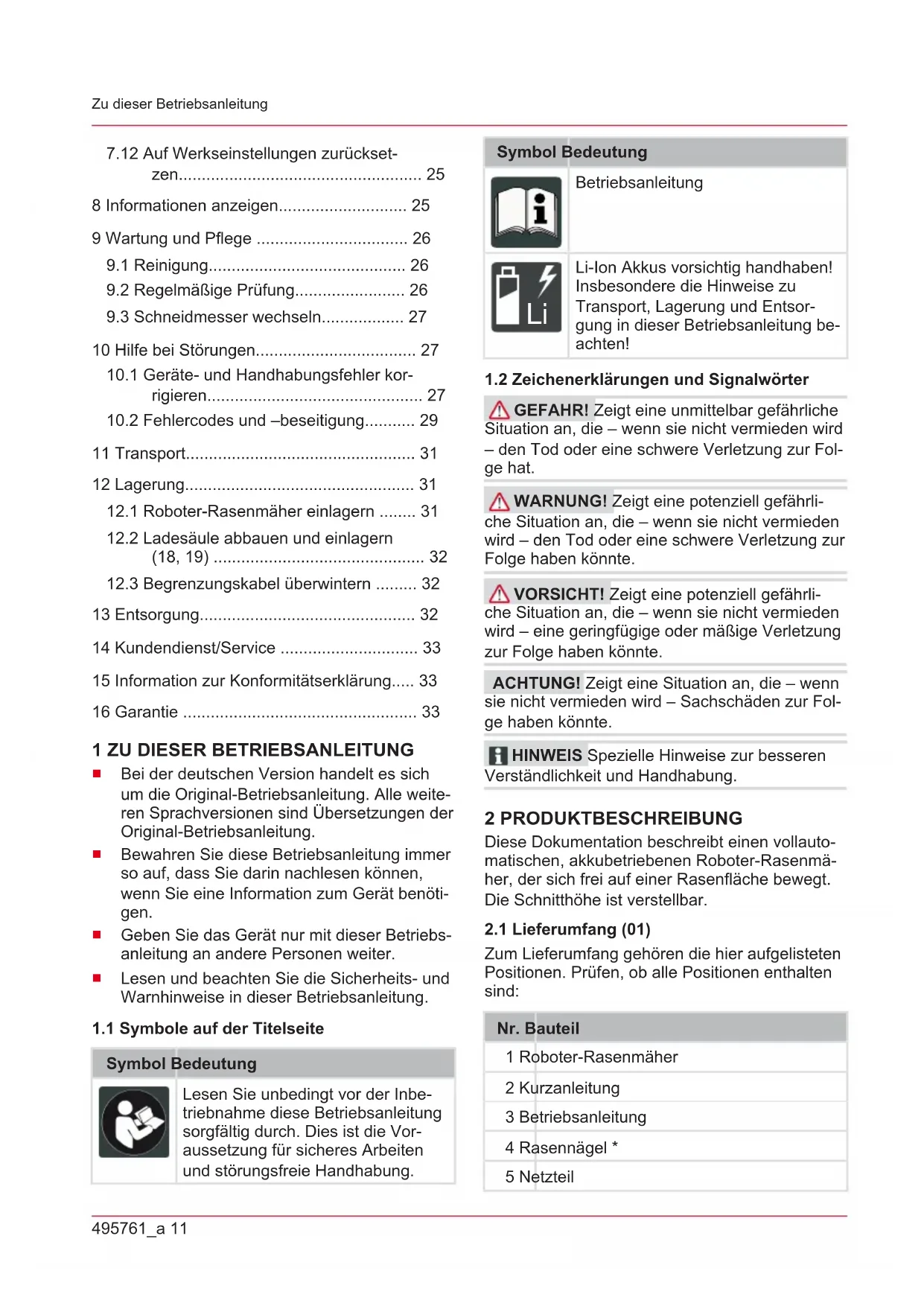 1.1 Symbole auf der Titelseite ................. 11