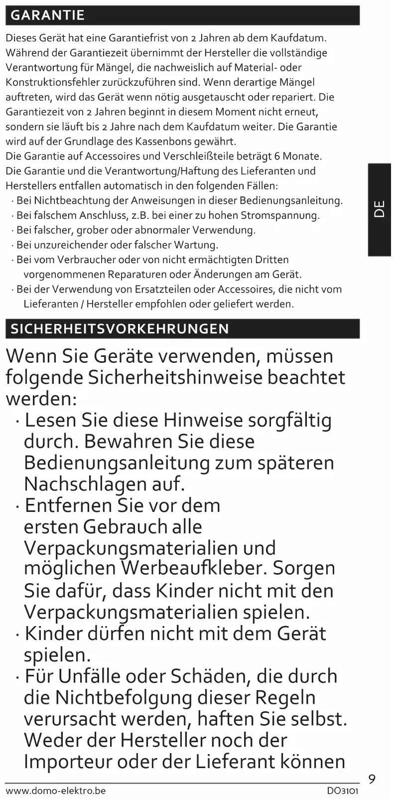 BEDIENUNGSANLEITUNG DO3101 DOMO