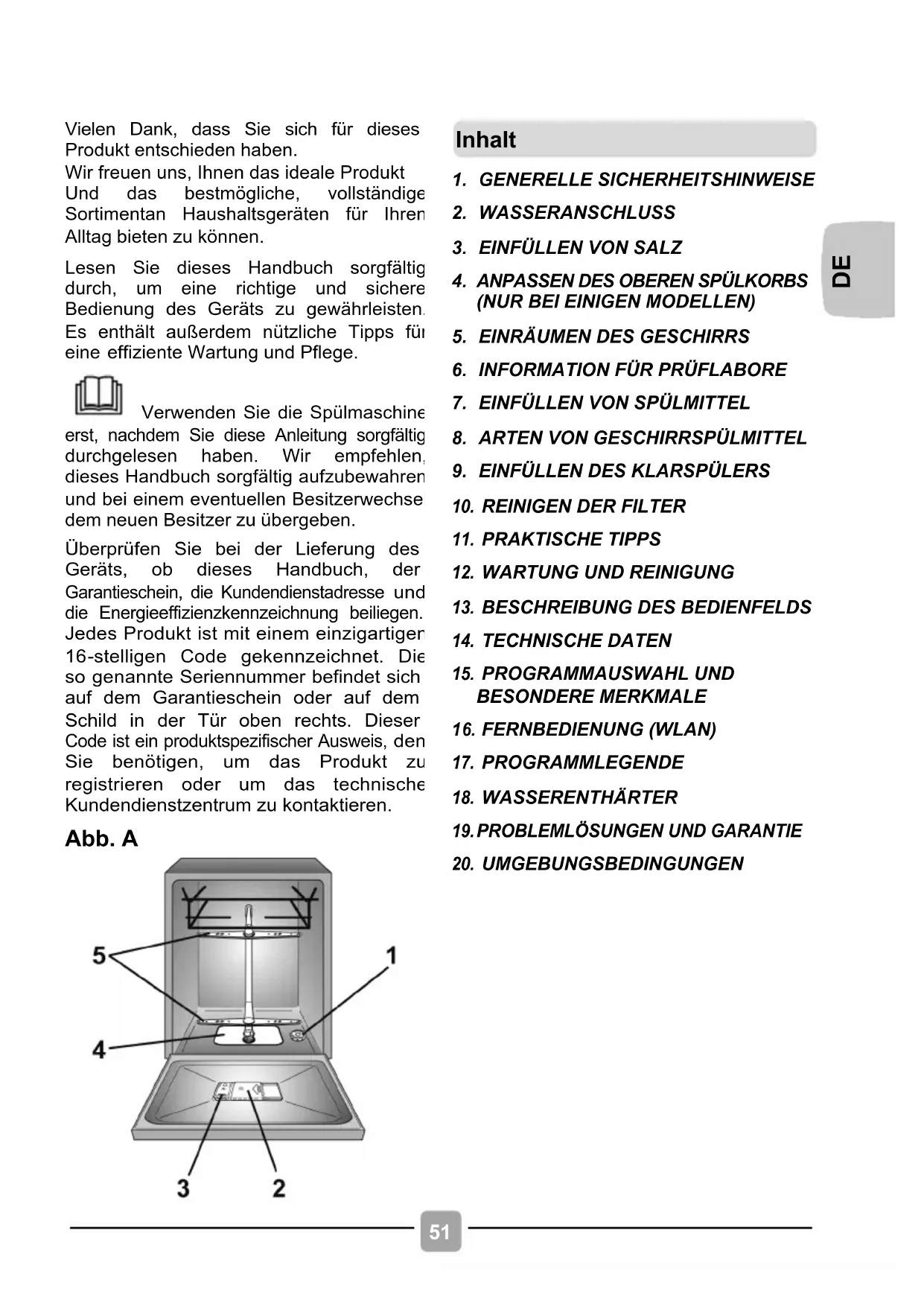 Verwenden Sie die Spülmaschine erst, nachdem Sie diese Anleitung sorgfältig durchgelesen haben. Wir empfehlen, dieses Handbuch sorgfältig aufzubewahren und bei einem eventuellen Besitzerwechsel dem neuen Besitzer zu üb ergeben.