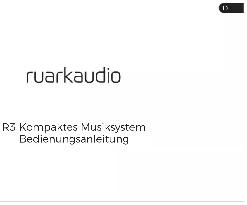 BedienungsanleitungSicherheitshinweise und -vorschriften ● Lesen Sie diese Bedienungsanleitung und befolgen Sie alle Anweisungen. So können Sie Ihr Produkt ordnungsgemäß einstellen und bedienen. ● Beachten Sie alle Warnhinweise und bewahren Sie diese Bedienungsanleitung zum späteren Nachschlagen auf. ● Verwenden Sie kein beschädigtes Gerät, da dies zu einem gefährlichen Stromschlag führen könnte. ● Gerät nicht öffnen. Keine Abdeckungen entfernen. Elektronik nicht freilegen. Das Gerät darf nicht vom Verbraucher gewartet oder repariert werden. ● Die Wartung muss durch qualiziertes Servicepersonal durchgeführt werden. Eine Wartung ist notwendig, wenn das Gerät beschädigt wurde, z.B. Stromkabel oder Stecker beschädigt, Flüssigkeiten eingedrungen oder Gegenstände in das Gerät gefallen, Gerät war Regen oder Feuchtigkeit ausgesetzt, funktioniert nicht richtig oder ist heruntergefallen. ● Das Gerät darf ausschließlich mit den auf der Rückseite angegebenen AC-Spannungen oder dem mitgelieferten Netzteil verwendet werden. Wird das Gerät an andere Spannungen angeschlossen, können irreversible Schäden am Gerät entstehen. In diesem Fall gilt die Produktgarantie nicht mehr. ● Stellen Sie sicher, dass der Netzstecker oder der Netzanschluss für die Einheit gut zugänglich sind, falls diese vom Stromnetz getrennt werden muss. ● Das Netzteil, der Netzstecker oder der Netzanschluss muss aus der Steckdose gezogen werden, um das System vollständig vom Stromnetz zu trennen. ● Stellen Sie keine offenen Flammen wie brennende Kerzen auf oder in die Nähe des Geräts. Nicht in der Nähe von Wärmequellen wie Heizkörpern, Öfen oder anderen wärmeproduzierenden Geräten (einschließlich Verstärkern) installieren. ● Keiner extremen Hitze oder Kälte aussetzen. ● Verwenden Sie nur für dieses Gerät zugelassene(s) Zusatzgeräte/ Zubehör. Keine Änderungen am System oder Zubehör durchführen. Nicht genehmigte Änderungen können die Sicherheit, Konformität und Leistung des Geräts gefährden. ● Verwenden Sie nur die mitgelieferte Antenne oder eine zugelassene Ersatzantenne. ● Das Gerät weder Regen noch Feuchtigkeit aussetzen, um die Gefahr eines Feuers oder Stromschlags zu reduzieren. Das Gerät darf nicht mit tropfenden oder spritzenden Flüssigkeiten in Kontakt kommen. Es sollten keine Gegenstände mit Flüssigkeit wie beispielsweise Vasen darauf oder in der Nähe abgestellt werden. Wie bei allen elektronischen Geräten müssen Sie darauf achten, dass keine Flüssigkeiten in das System eindringen. Flüssigkeiten können zu einem Defekt oder einer Feuergefahr führen. ● Das Gerät sollte bei Gewitter oder längerer Nichtnutzung von der Stromversorgung getrennt werden, damit es nicht zu Schäden kommt. ● Um die Gefahr eines Feuers oder Stromschlags zu vermeiden, sollten Steckdosen, Verlängerungskabel oder Mehrfachsteckdosen nicht überlastet werden. ● Laute Musik kann langfristig zu Hörschäden führen. Bei der Verwendung von Kopfhörern sollte die Lautstärke, vor allem über einen längeren Zeitraum, nicht zu hoch sein. ● Das Gerät darf nicht in engen Räumen installiert werden. Beachten Sie für die Lüftung einen Mindestabstand von 10 cm um das Gerät. Vergewissern Sie sich, dass Vorhänge oder andere Gegenstände die Lüftungsöffnungen des Geräts nicht verdecken. Dieses Produkt ist gemäß der europäischen Richtlinie 2012/19/EU über Elektro- und Elektronikgeräte-Abfall gekennzeichnet. Dieses Symbol zeigt an, dass das Produkt und die enthaltenen Batterien nicht mit dem normalen Hausmüll entsorgt werden dürfen. Entsorgen Sie es gemäß den geltenden Bestimmungen für Elektronikmüll.DE CE-KONFORMITÄT Dieses Produkt entspricht allen gesetzlich vorgeschriebenen EU- Richtlinien. Hiermit erklärt Ruark Audio, dass dieses Gerät den grundlegenden Anforderungen und einschlägigen Bestimmungen der Funkgeräterichtlinie 2014/53/EU entspricht. Sie können die vollständige CE-Konformitätserklärung herunterladen: www.ruarkaudio.com/doc/R3doc.pdf Spezifikationen Verstärker und Lautsprecher 2 × 75mm Ruark NS+ Treiber 30W Leistungsverstärker der Klasse AB Verbesserter digitaler 3D-Audioprozessor Tuner Tuner für DAB, DAB+ und UKW mit RDS DAB-/UKW-Antenneneingang mit 75-Ohm-Steckverbinder CD player