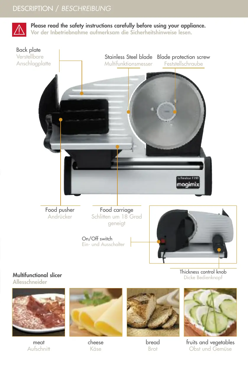 BEDIENUNGSANLEITUNG TRANCHEUR T190 MAGIMIX
