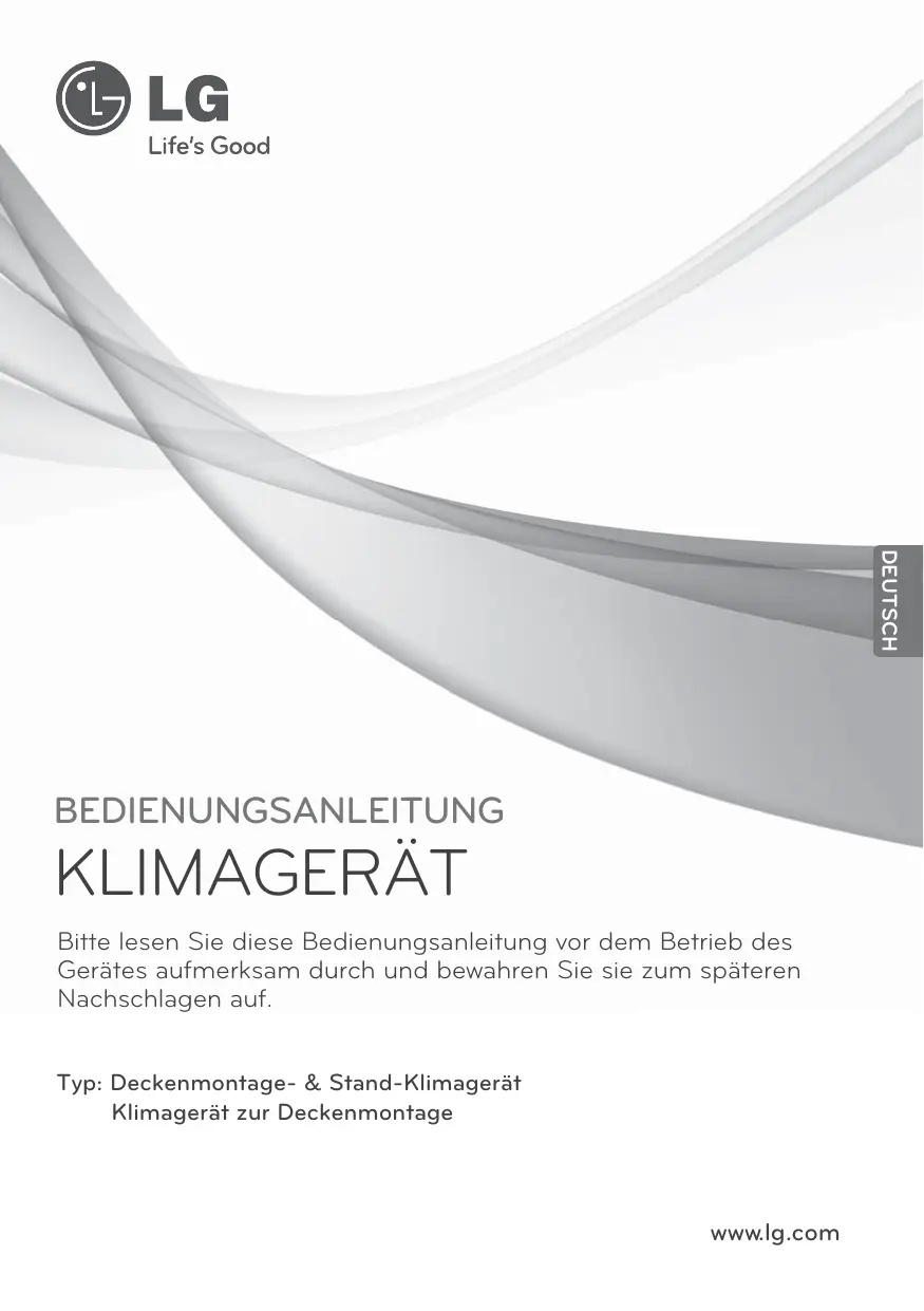 DEUTSCH BEDIENUNGSANLEITUNG KLIMAGERÄT Bitte lesen Sie diese Bedienungsanleitung vor dem Betrieb des Gerätes aufmerksam durch und bewahren Sie sie zum späteren Nachschlagen auf. Typ: Deckenmontage- & Stand-Klimagerät Klimagerät zur Deckenmontage