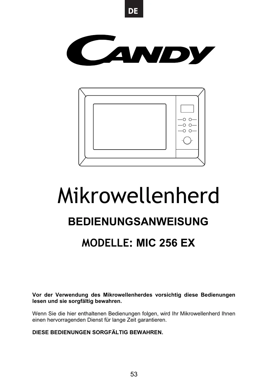 MIC256 EX - Mikrowellen CANDY - Kostenlose Bedienungsanleitung