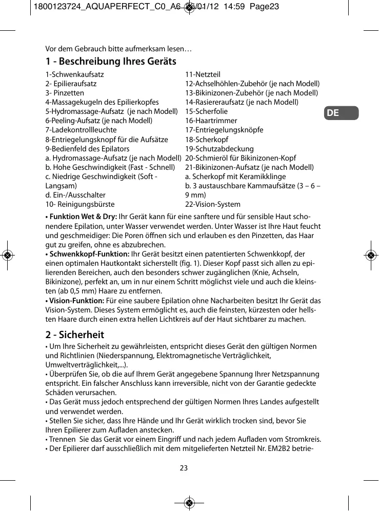 1800123724_AQUAPERFECT_C0_A6 25/01/12 14:59 Page23 Vor dem Gebrauch bitte aufmerksam lesen…