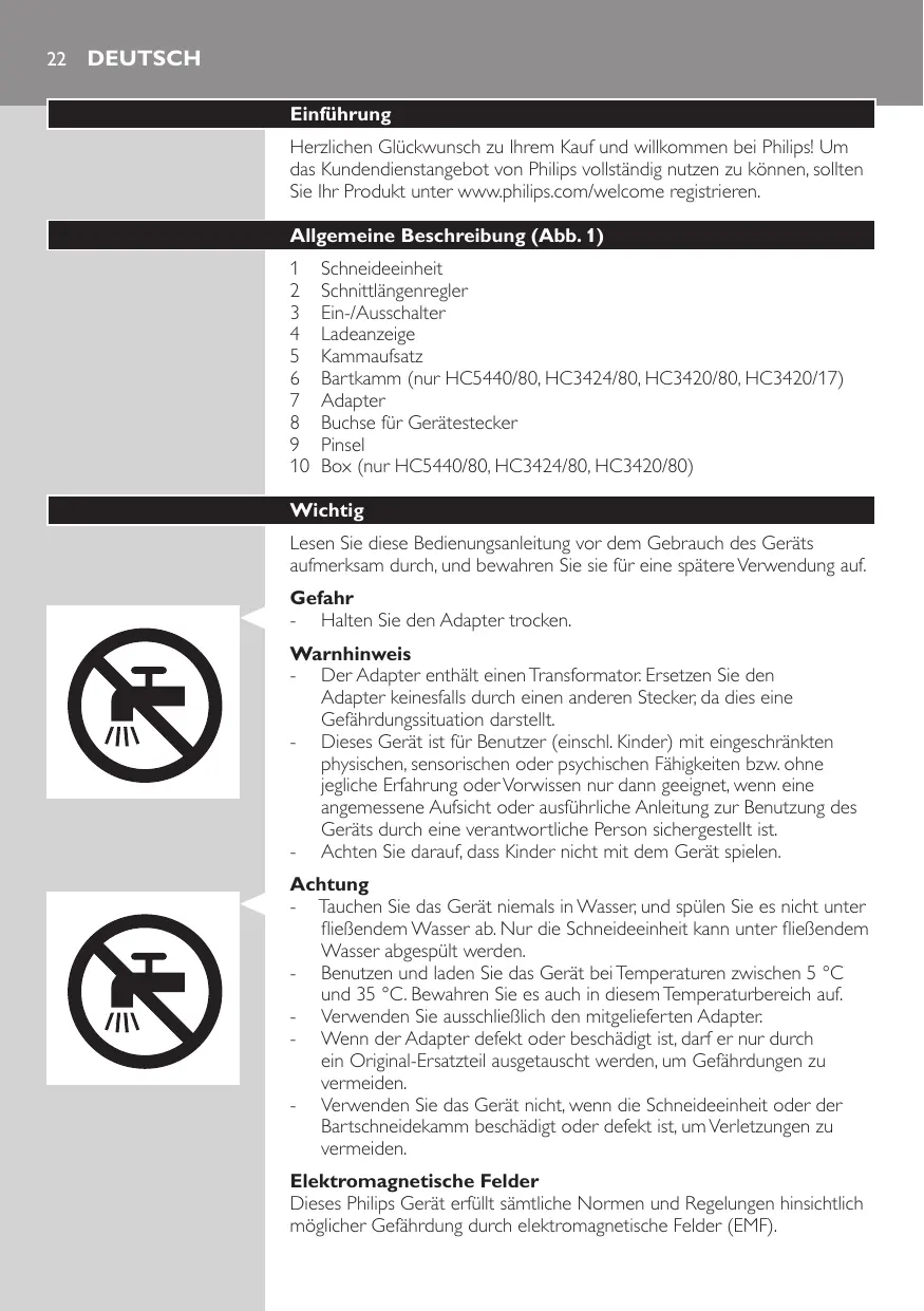 Finden Sie kostenlos die Bedienungsanleitung des Geräts HC3424/80 PHILIPS als PDF.