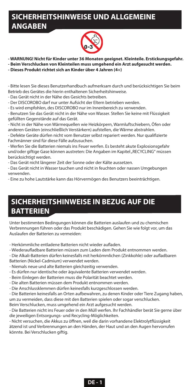 Der DISCOROBO darf nur unter Aufsicht der Eltern betrieben werden