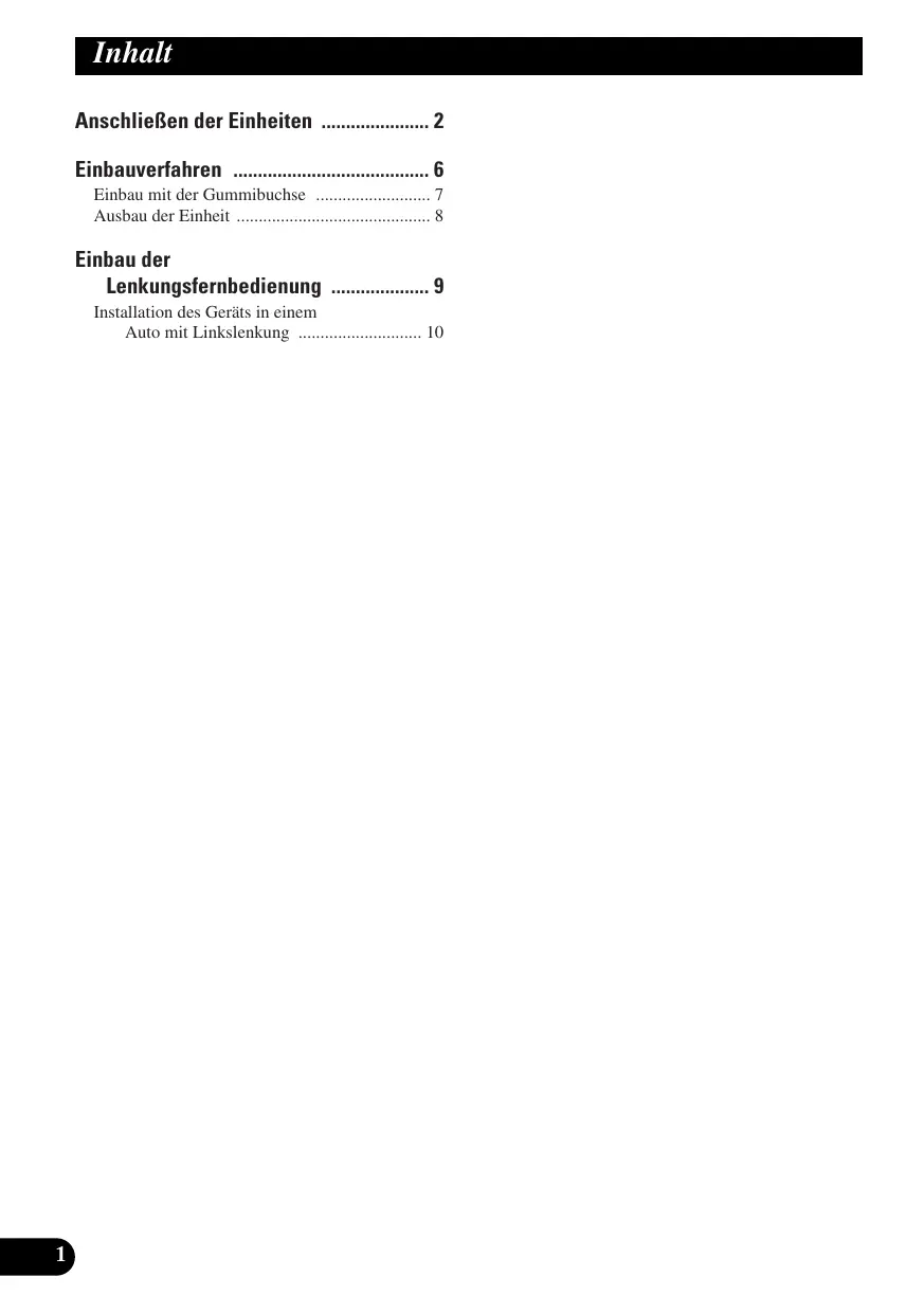 - Installation des Geräts in einem Auto mit Linkslenkung p. 10