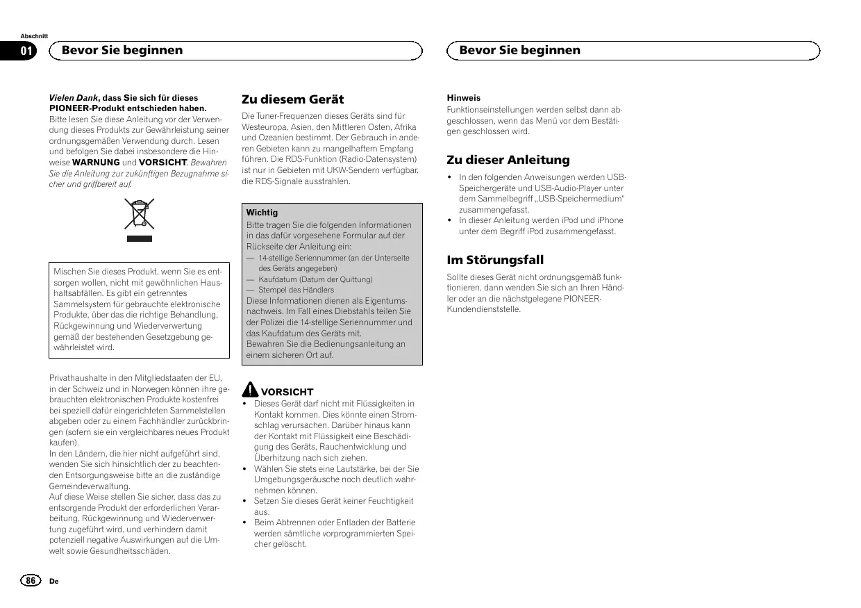 — 14-stellige Seriennummer (an der Unterseite des Geräts angegeben) — Kaufdatum (Datum der Quittung) — Stempel des Händlers Bedienung des Geräts
