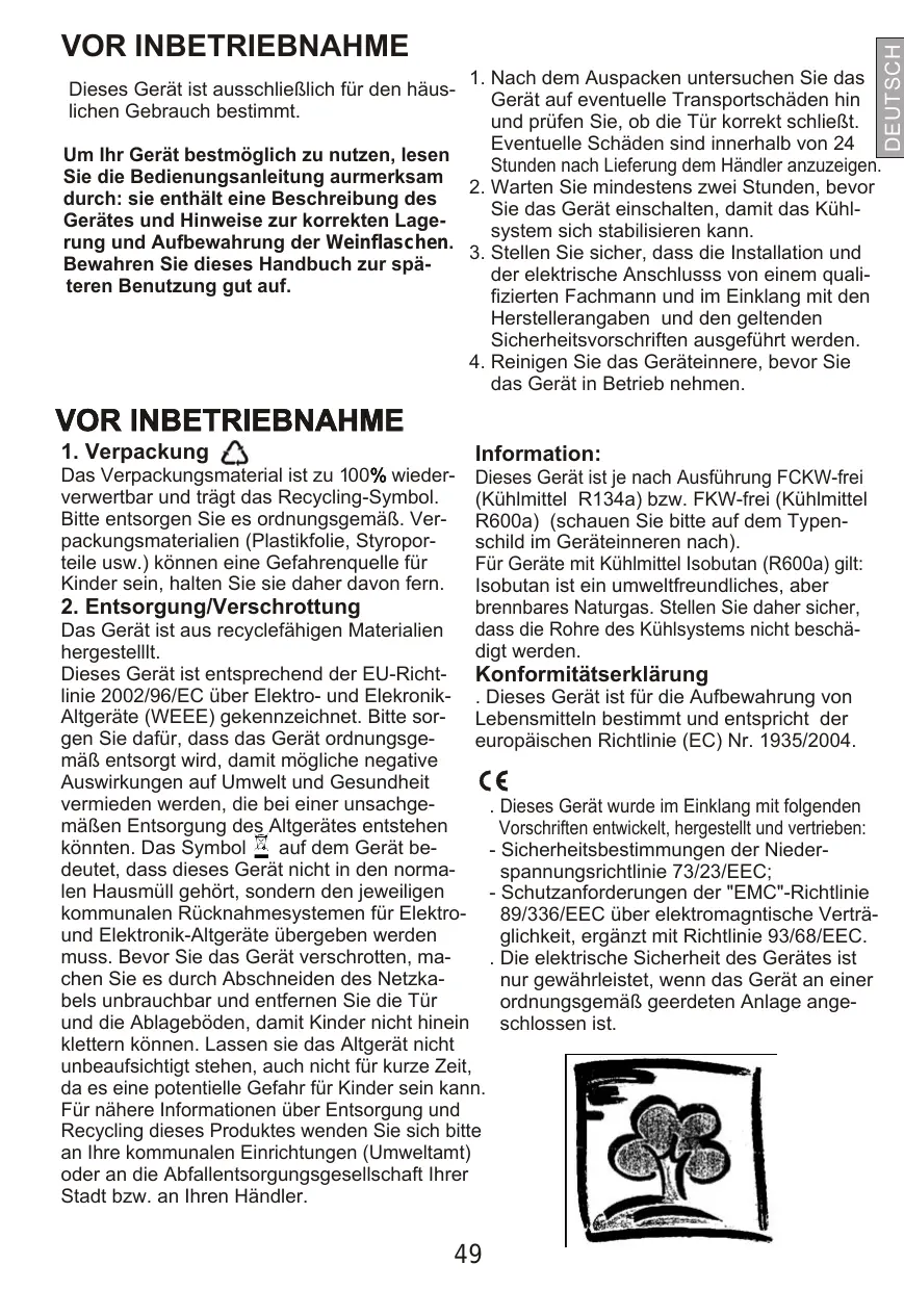 Cet appareil est destiné au stockage du vin et est conforme à la directive européenne (CE) n° 1935/2004.