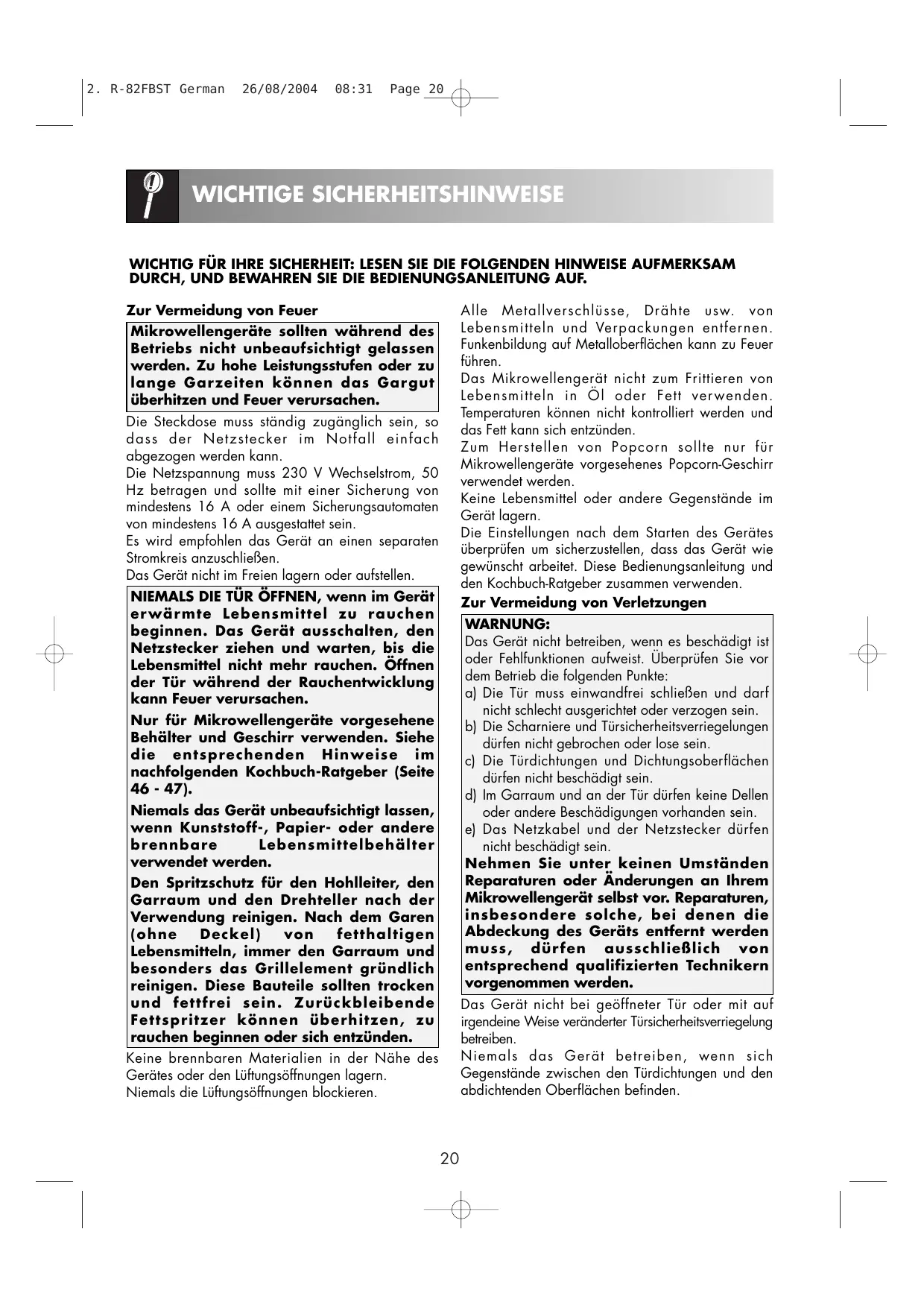 R-82FBST - Mikrowellen SHARP - Kostenlose Bedienungsanleitung
