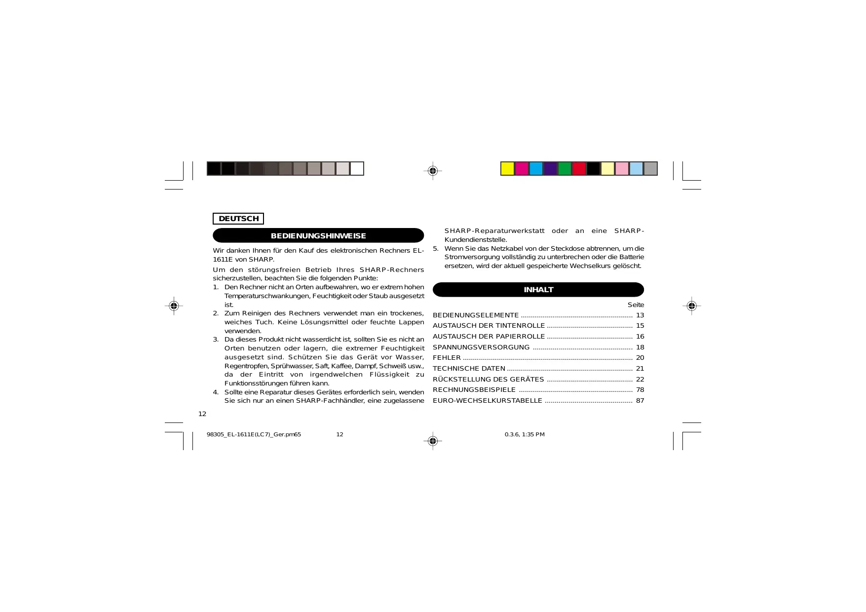 BEDIENUNGSANLEITUNG EL-1611E SHARP
