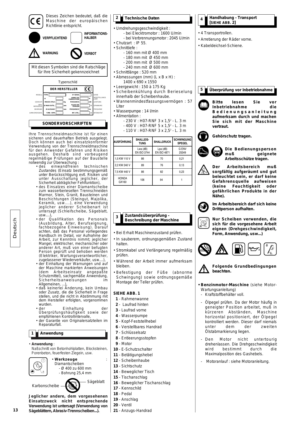 • Veiller à la propreté des surfaces d'appui du disque, des flasques et de la broche. Le fabricant décline toute responsabilité résultant d'un emploi inadapté, de toute modification, adaptation ou motorisation non conforme à la définition d'origine prévue par le constructeur. Au poste de travail, la puissance sonore peut dépasser 85 db (A). Dans ce cas, des mesures individuelles de protection doivent être prises.