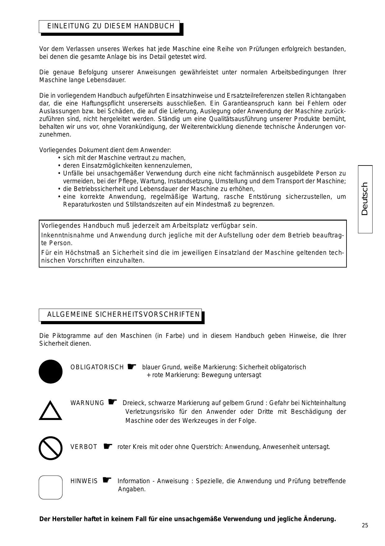 L'emploi de pictogrammes sur les machines (en couleur) et dans le manuel indiqueront des conseils qui concernent votre sécurité.