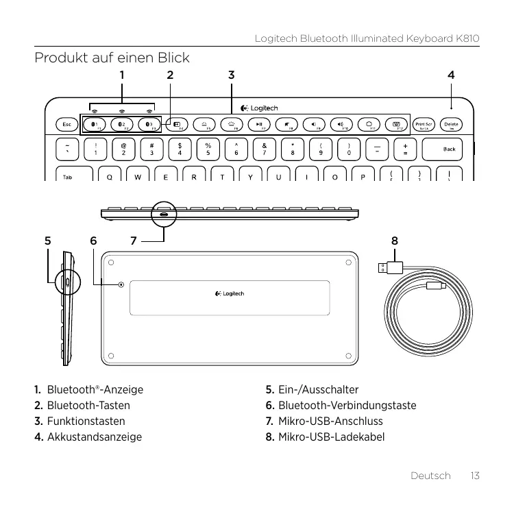 Laden Sie die Anleitung für Ihr Bluetooth-Tastatur kostenlos im PDF-Format! Finden Sie Ihr Handbuch K810 BLUETOOTH ILLUMINATED KEYBOARD - LOGITECH und nehmen Sie Ihr elektronisches Gerät wieder in die Hand. Auf dieser Seite sind alle Dokumente veröffentlicht, die für die Verwendung Ihres Geräts notwendig sind. K810 BLUETOOTH ILLUMINATED KEYBOARD von der Marke LOGITECH.