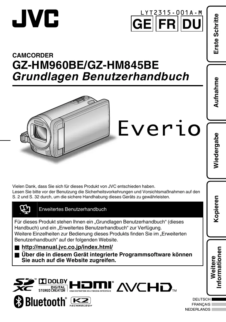 Laden Sie die Anleitung für Ihr Camcorder kostenlos im PDF-Format! Finden Sie Ihr Handbuch GZ-HM960BE - JVC und nehmen Sie Ihr elektronisches Gerät wieder in die Hand. Auf dieser Seite sind alle Dokumente veröffentlicht, die für die Verwendung Ihres Geräts notwendig sind. GZ-HM960BE von der Marke JVC.