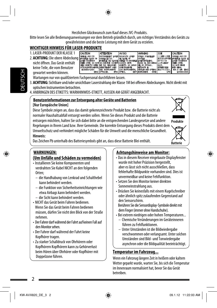 WICHTIGER HINWEIS FÜR LASER-PRODUKTE