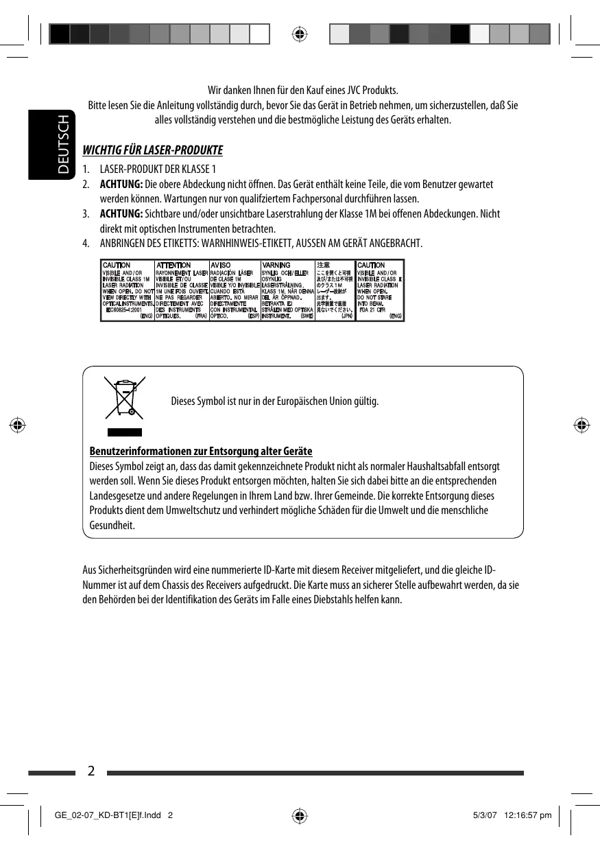 BEDIENUNGSANLEITUNG KD-BT1 JVC
