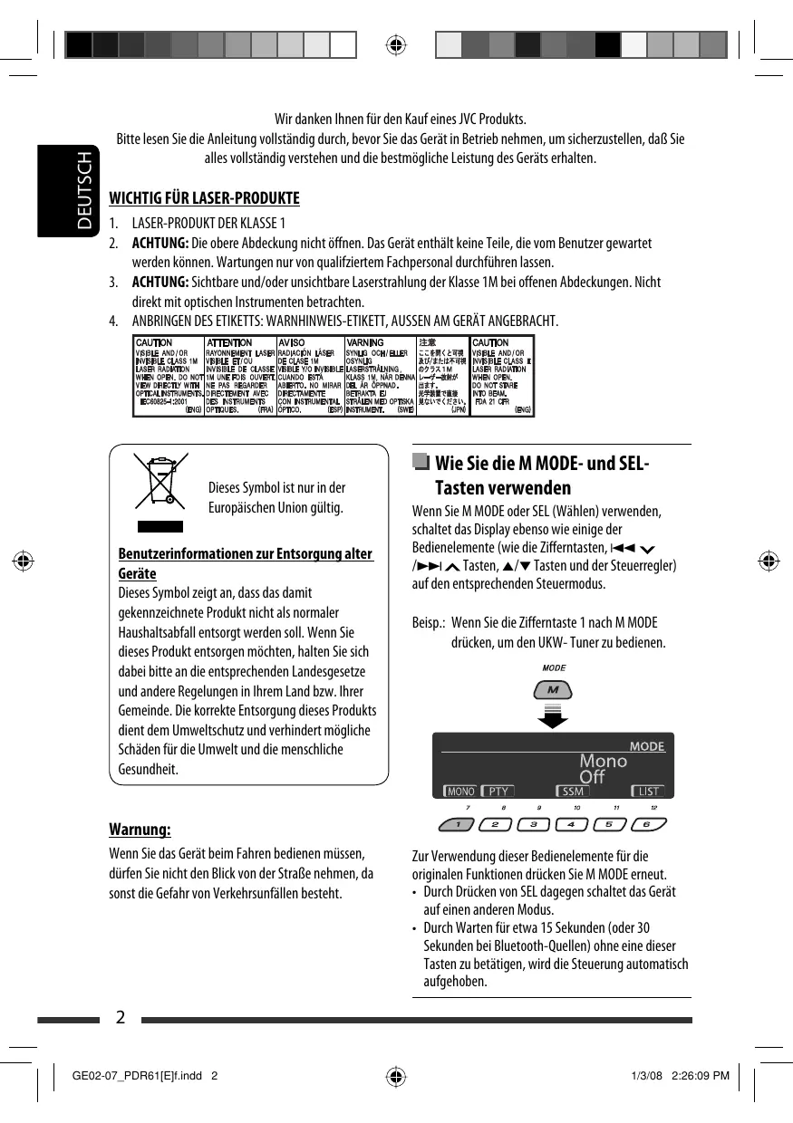 BEDIENUNGSANLEITUNG KD-PDR61 JVC