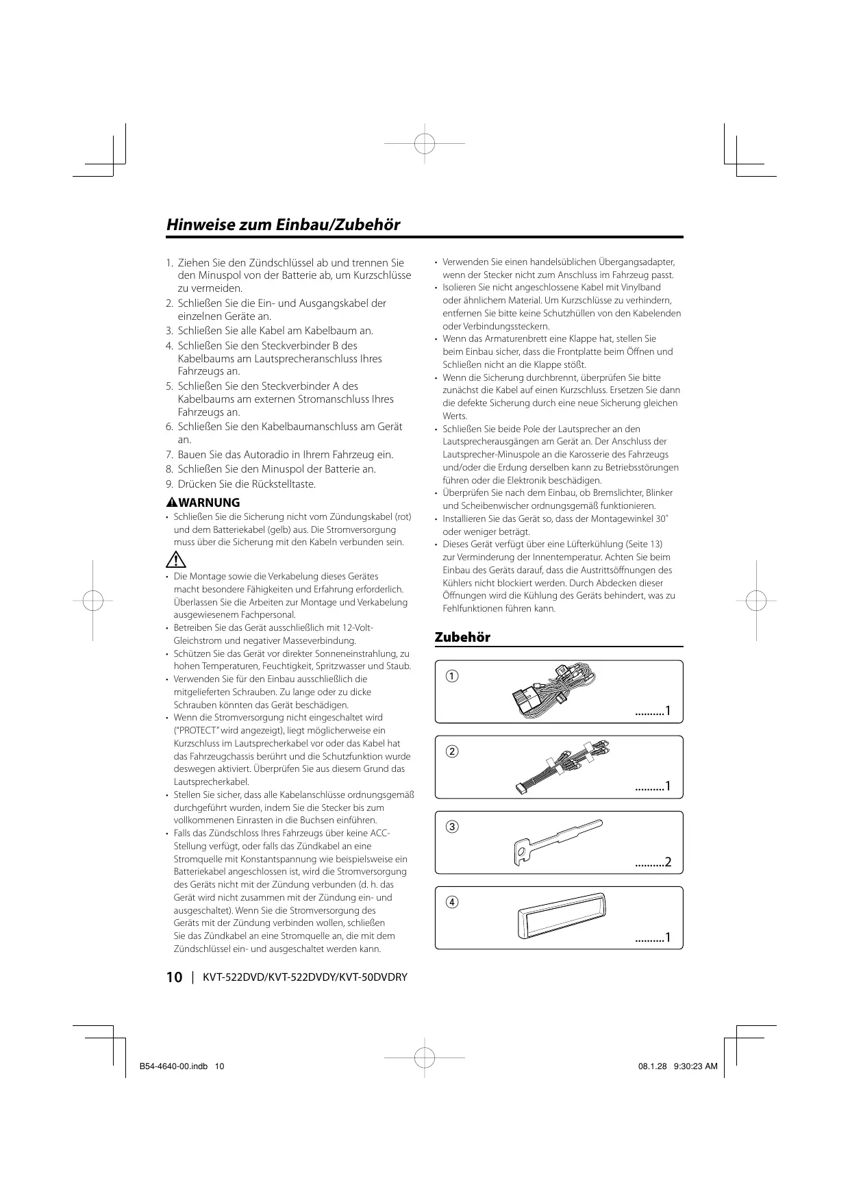 Hinweise zum Einbau/Zubehör