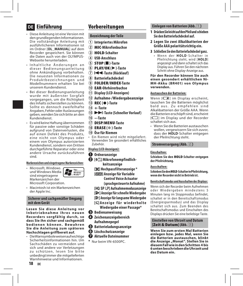 - Diese Anleitung ist eine Version mit den grundlegenden Informationen. Die vollständige Anleitung mit ausführlicheren Informationen ist im Ordner [OL_MANUAL] auf dem Recorder gespeichert. Sie können die Daten auch von der OLYMPUSWebseite herunterladen.