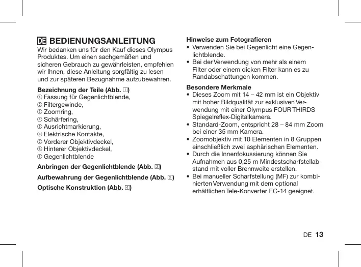 BEDIENUNGSANLEITUNG ZUIKO DIGITAL ED 14 OLYMPUS