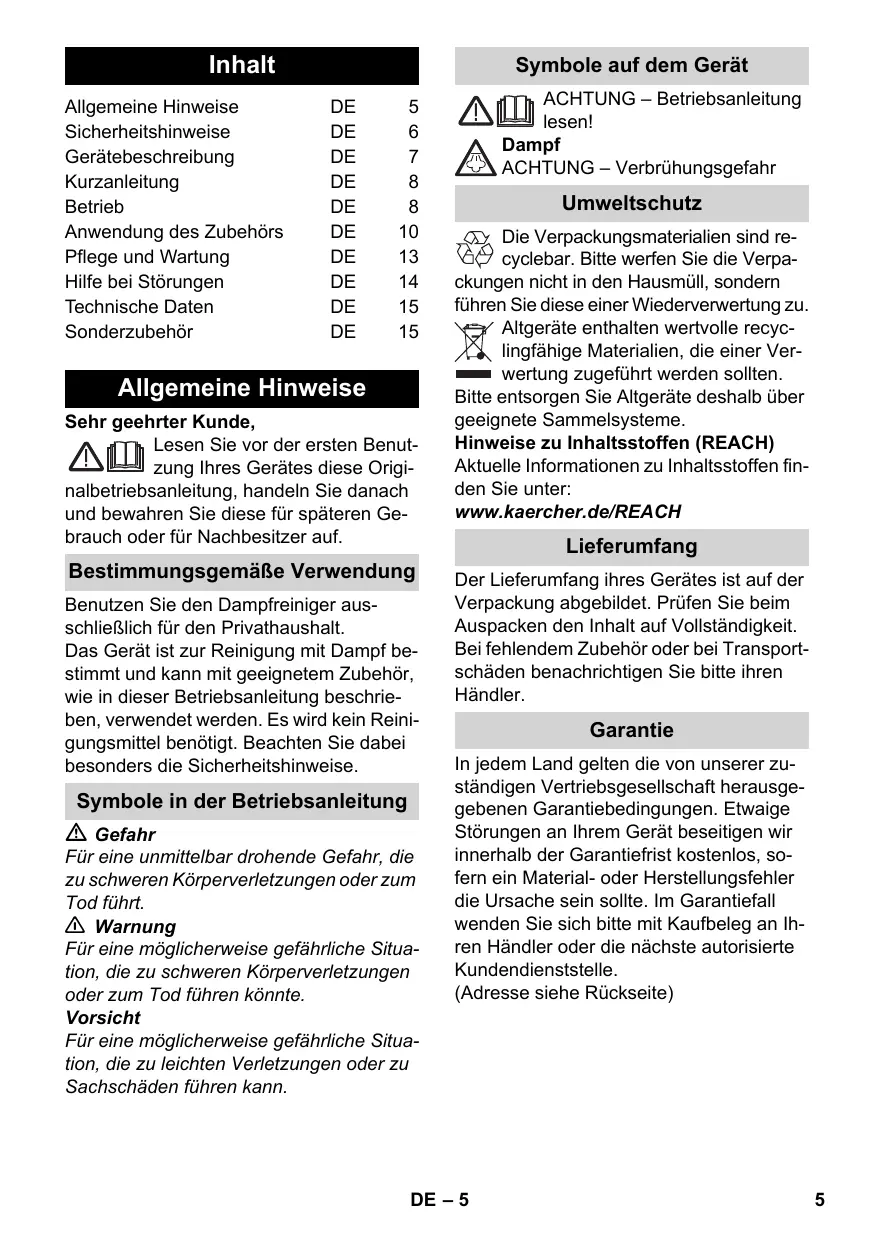 Finden Sie kostenlos die Bedienungsanleitung des Geräts SC 5 KARCHER als PDF.