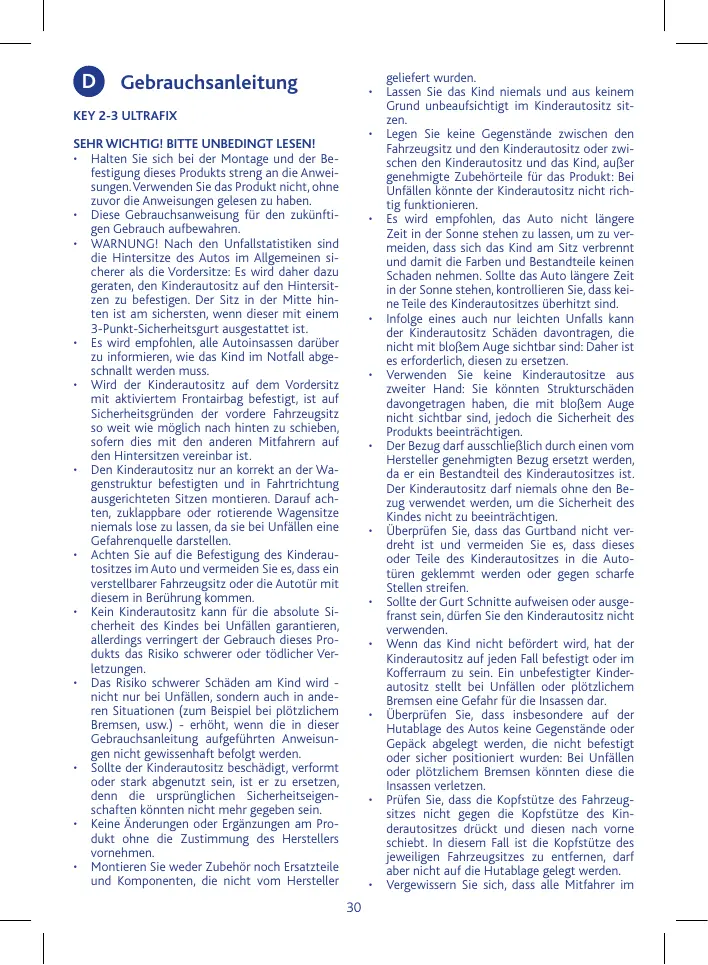 - Die Ultrafix-Verbindungen sind stets zusammen mit den Sicherheitsgurten des Autos zu verwenden. Der Kinderautositz ist niemals nur durch die Ultrafix-Verbindungen zu befestigen.