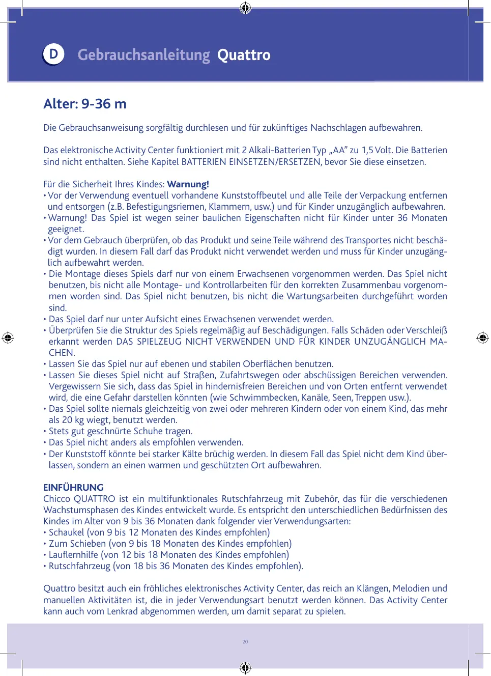 BEDIENUNGSANLEITUNG QUATTRO CHICCO