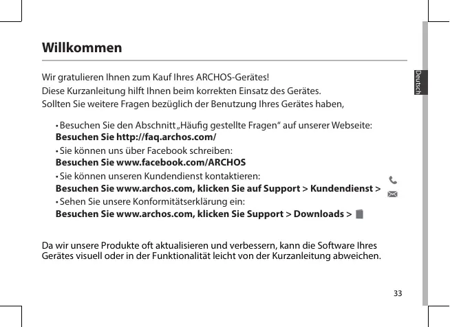 Besuchen Sie www.facebook.com/ARCHOS Sie kônnen unseren Kundendienst kontaktieren: