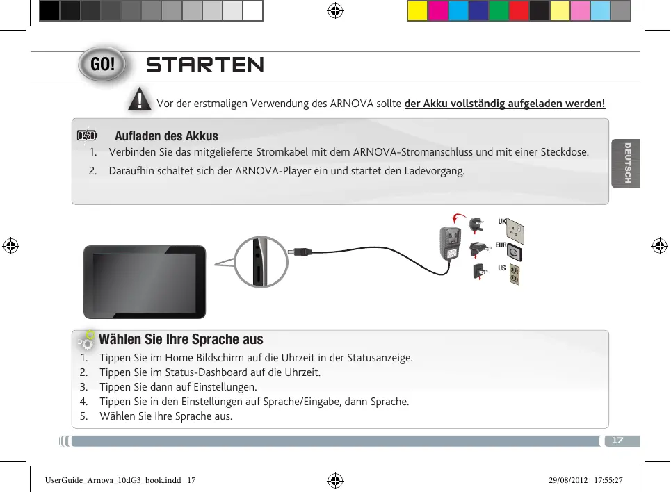 STARTEN À Vor der erstmaligen Verwendung des ARNOVA sollte der Akku vollständig aufgeladen werden! Œ® Aufladen des Akkus