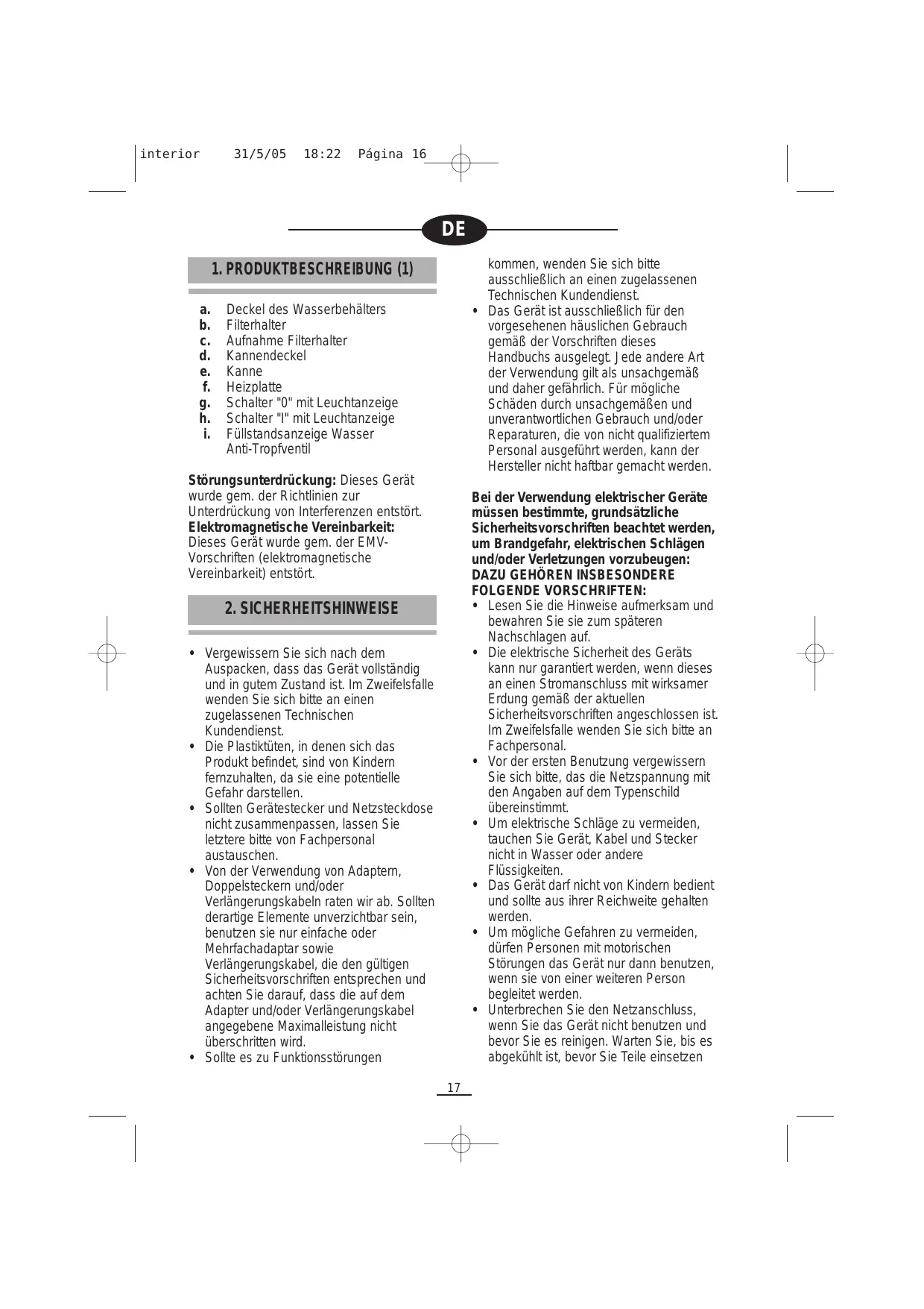 interior 31/5/05 18:22 Página 18 bevor Sie neuen Kaffee zubereiten oder die Kanne reinigen.