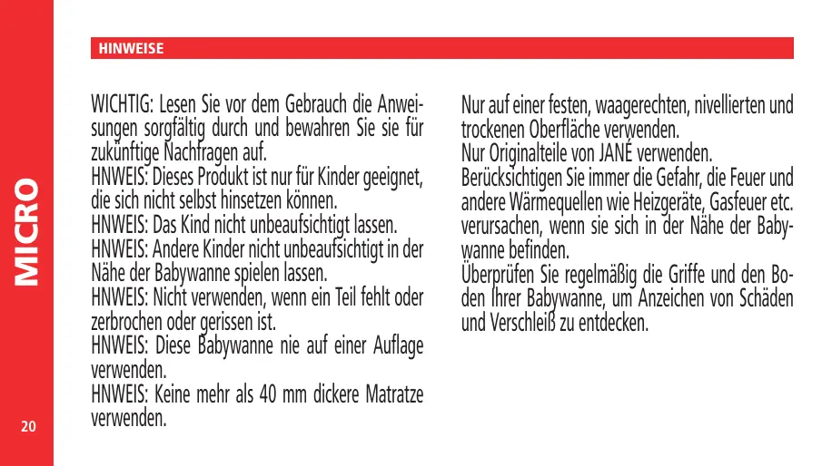 Laden Sie die Anleitung für Ihr kostenlos im PDF-Format! Finden Sie Ihr Handbuch MICRO - JANE und nehmen Sie Ihr elektronisches Gerät wieder in die Hand. Auf dieser Seite sind alle Dokumente veröffentlicht, die für die Verwendung Ihres Geräts notwendig sind. MICRO von der Marke JANE.