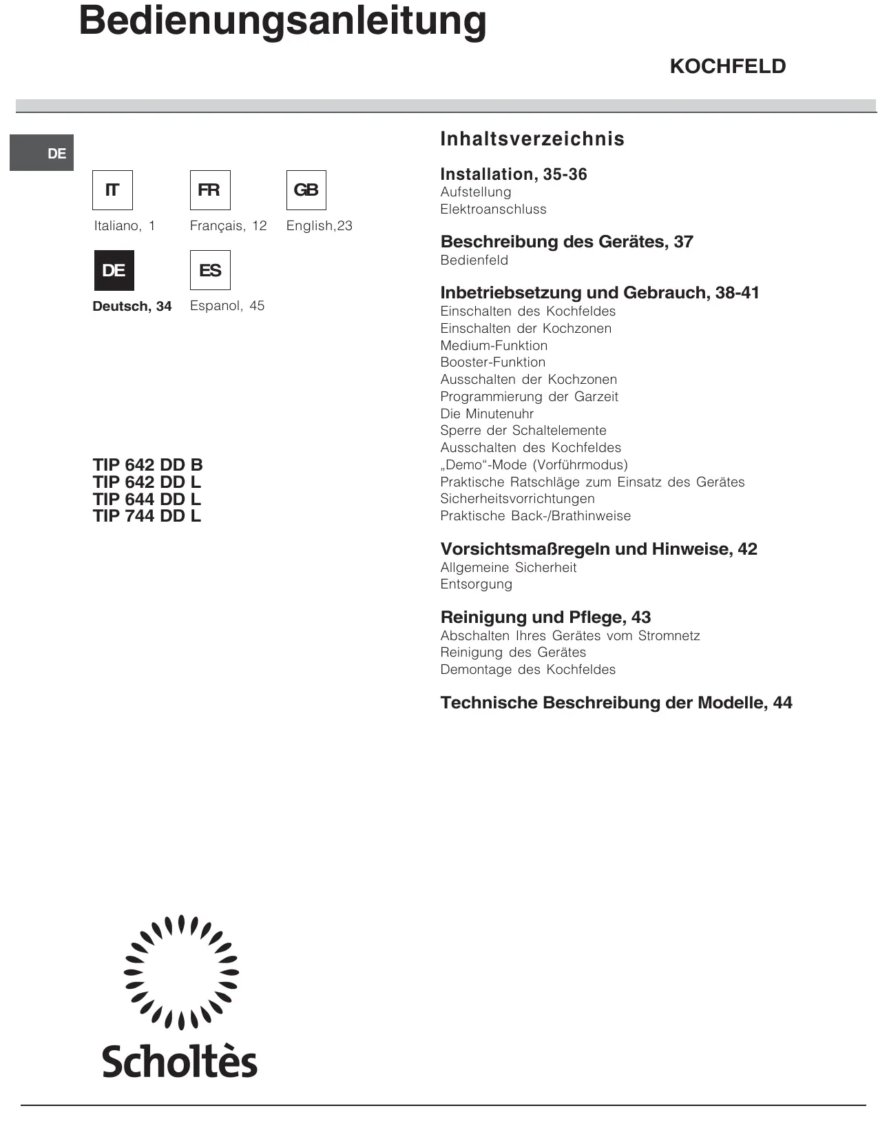 TIP 744 DDL - Kochfeld SCHOLTES - Kostenlose Bedienungsanleitung