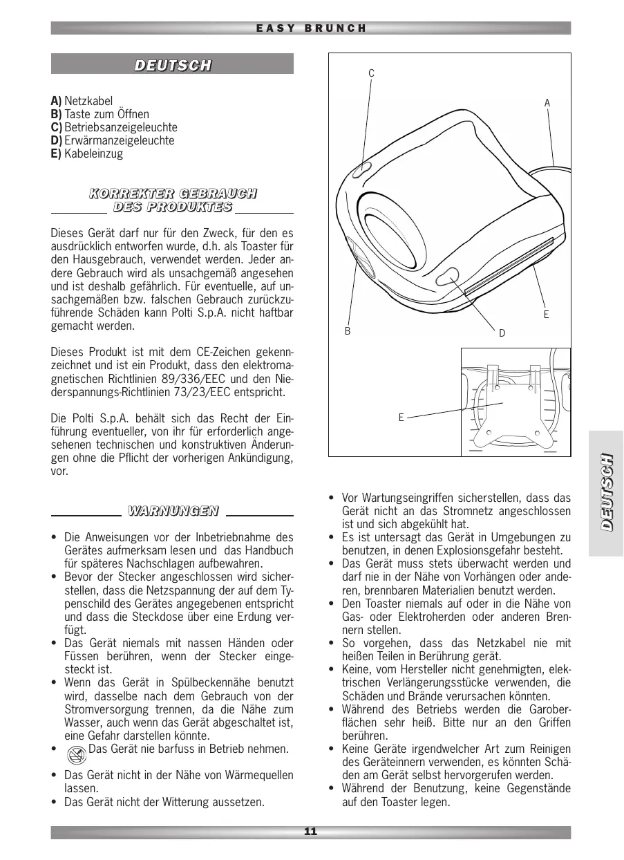 EASY BRUNCH - Toaster POLTI - Kostenlose Bedienungsanleitung