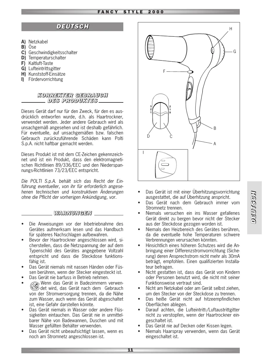 FANCY STYLE 2000 - Haartrockner POLTI - Kostenlose Bedienungsanleitung